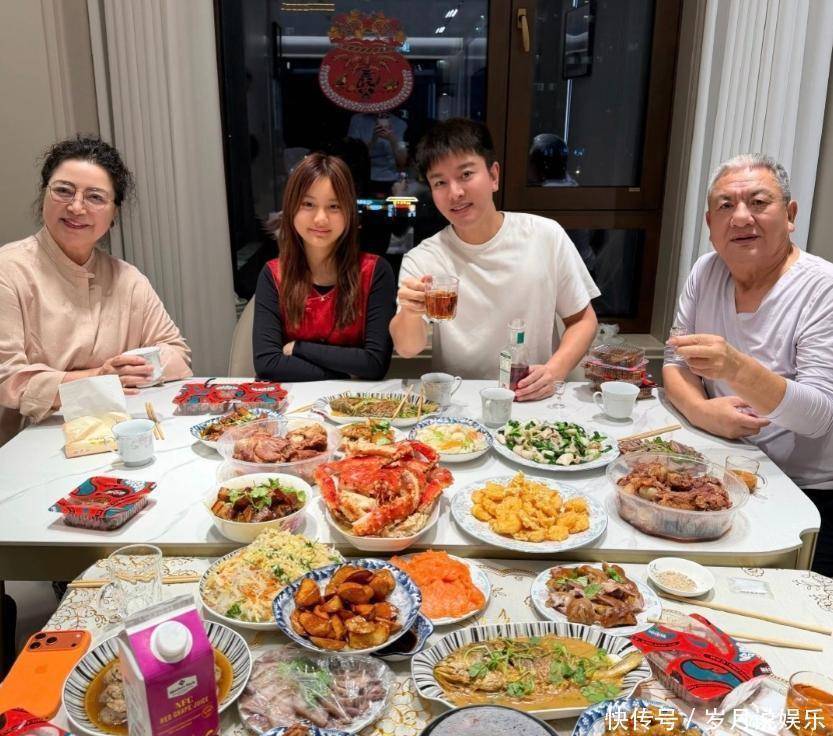 再看贾乃亮准备的年夜饭,那叫一个丰盛,直接摆满了桌子,看得人直流口水!拔丝地瓜、炖鱼、爽口凉菜、溜肉段,还有新鲜的海鲜、软烂的排骨、入味的红焖肉……全是实打实的硬菜,大多都是东北特色,妥妥的东北人过年的排面,烟火气直接拉满。不过有个小细节,让人觉得格外接地气!本以为一家人过年,会围着大大的圆桌热热闹闹就餐,结果没想到,贾乃亮居然用两个小桌子拼凑在一起当餐桌,没有一点明星的架子,和普通老百姓过年一模一样,简单又真实,这份烟火气,比华丽的排场更动人。